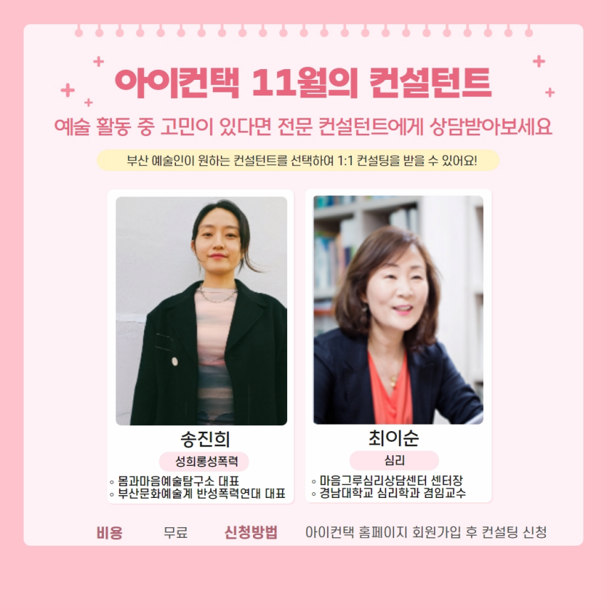 예술인 1:1 컨설팅 <아이컨택> 11월의 컨설턴트