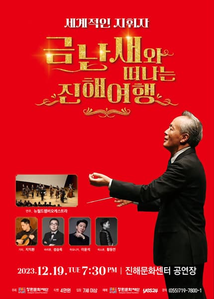 [창원] 세계적인 지휘자 금난새와 떠나는 진해여행 기간 : 2023-12-19 ~ 2023-12-19 장소 : 진해문화센터(진해구민회관) 공연장 문의처 : 055-719-7800~1 요금 : 전석 40,000원 음악/콘서트 경남 예매하기