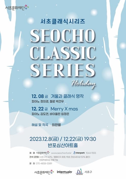 요금 : 전석 2만원 (서초구민 60% / 서초문화재단 홈페이지 회원, 학생, 만65세이상 50%)
