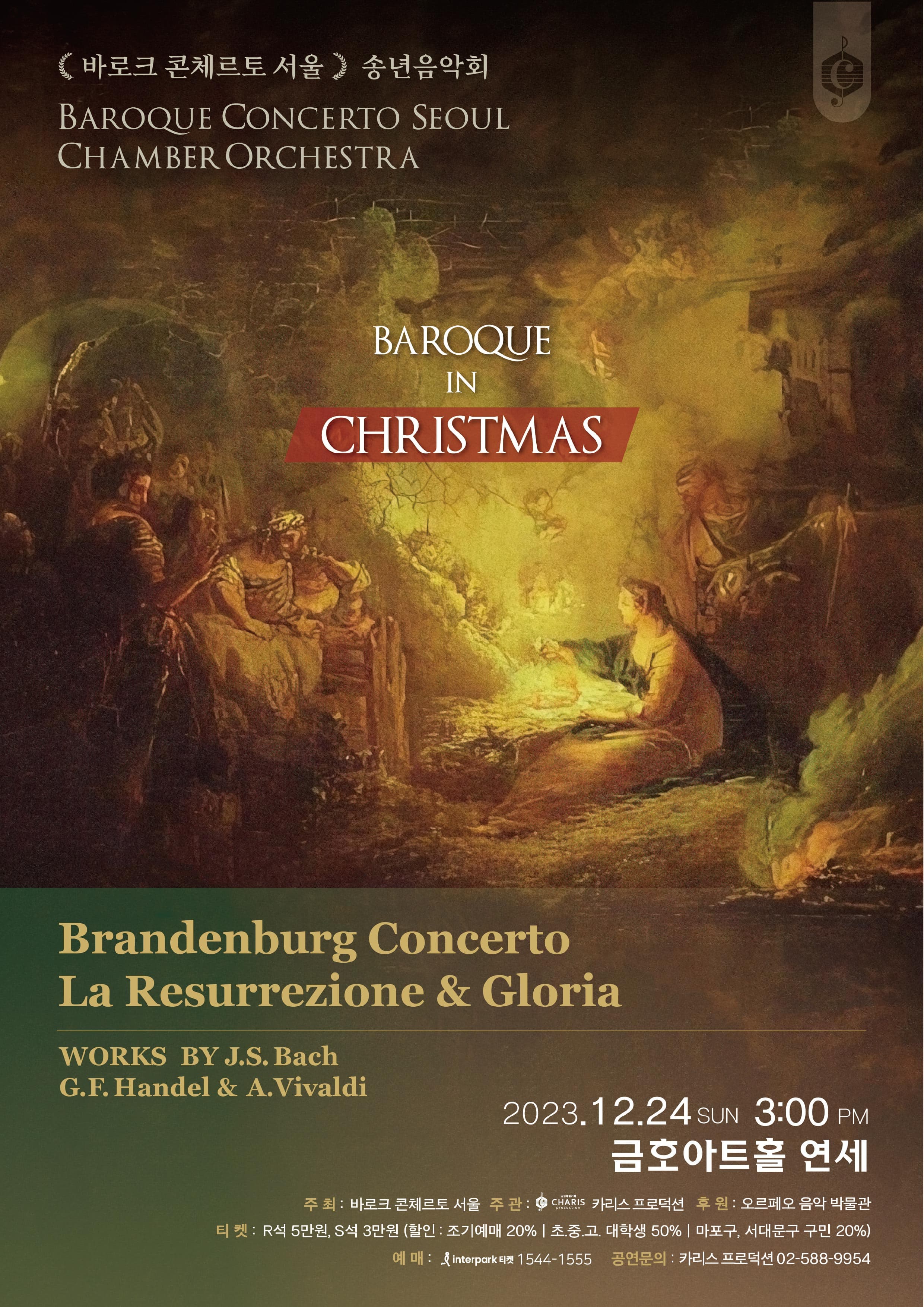 바로크 콘체르토 서울 - 송년음악회 기간 : 2023-12-04 ~ 2023-12-04 장소 : 금호아트홀 연세 문의처 : 카리스프로덕션 02-588-9954 요금 : R석 50,000 / S석 30,000 음악/콘서트 서울 예매하기