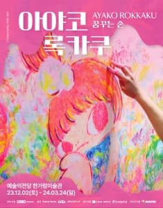 아야코 록카쿠, 꿈꾸는 손 기간 : 2023-12-02 ~ 2024-03-24 장소 : 예술의전당(한가람미술관) 문의처 : 02-837-6611 요금 : 성인 20,000원 / 청소년 16,000원 / 어린이 12,000원 / 36개월 미만 무료 기타 서울 예매하기