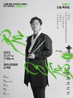 장영구 첫번째 드럼 독주회: 드럼을 통한 한국장단의 재해석, 타악프로젝트 RE:COVER 기간 : 2023-12-21 ~ 2023-12-21 장소 : 과천시민회관 소극장 문의처 : 02-522-1229 요금 : 전석 10,000원 음악/콘서트 경기 예매하기