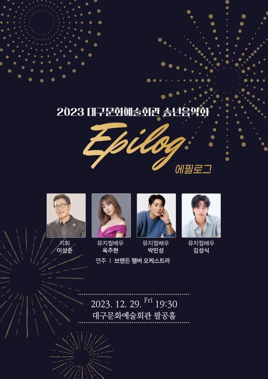 대구문화예술회관 송년음악회: 에필로그 기간 : 2023-12-29 ~ 2023-12-29 장소 : 대구문화예술회관 팔공홀 문의처 : 053-606-6135 요금 : R석 100,000원, S석 80,000원, A석 50,000원, H석 30,000원 음악/콘서트 대구 예매하기