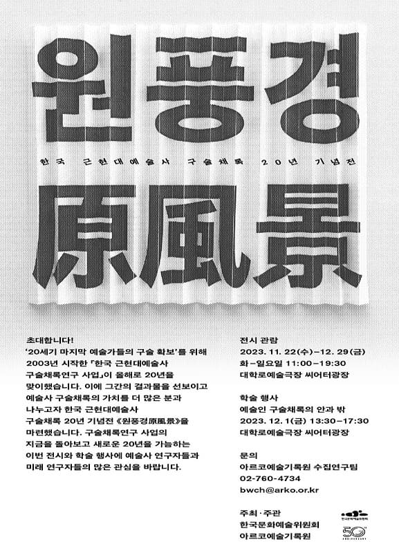 아르코예술기록원 <원풍경(原風景), 한국근현대예술사 구술채록 20년>