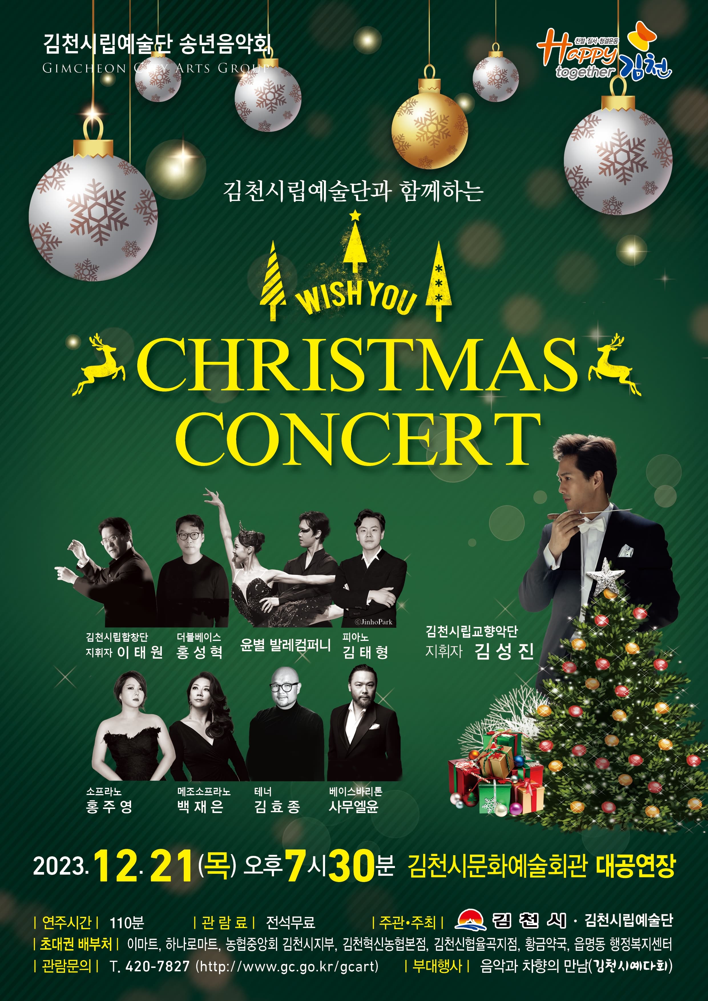 김천시립예술단 송년음악회, CHRISTMAS CONCERT 기간 : 2023-12-21 ~ 2023-12-21 장소 : 김천시문화예술회관 대공연장 문의처 : 054-420-7827 요금 : 전석무료 기타 경북 예매하기