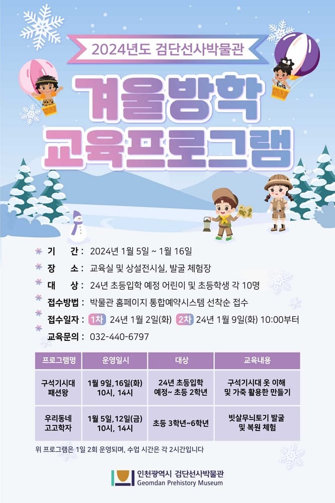 2024년 검단선사박물관 겨울방학 교육프로그램