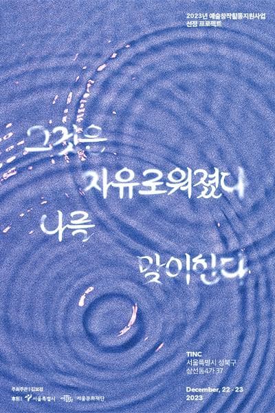 그것은 자유로워졌다 나를 맞이한다 기간 : 2023-12-22 ~ 2023-12-23 장소 : TINC This is Not a Church(구. 명성교회) TINC 문의처 : 010-6307-1946 요금 : 전석 20,000원 음악/콘서트 서울 예매하기