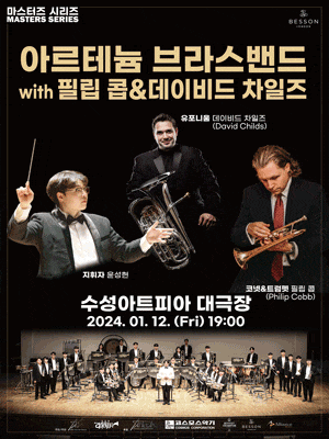[대구] 아르테늄 브라스밴드 마스터즈 시리즈 with 필립 콥 & 데이비드 차일즈 기간 : 2024-01-12 ~ 2024-01-12 장소 : 수성아트피아 용지홀 (대공연장) 문의처 : 인터파크 1544-1555 요금 : R석 70,000원, S석 50,000원, A석 30,000원 음악/콘서트 대구 예매하기