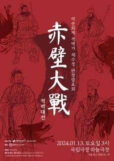 박송희제 적벽가 채수정 완창발표회, 적벽대전 기간 : 2024-01-13 ~ 2024-01-13 장소 : 국립극장 하늘극장 문의처 : 02-904-2835 요금 : 전석 20,000원 음악/콘서트 서울 예매하기