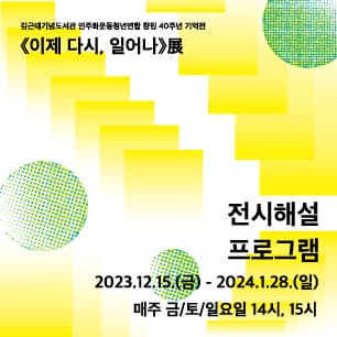 민주화운동청년연합 창립 40주년 기억전 《이제 다시, 일어나》展 전시 해설 프로그램 기간 : 2023-12-15 ~ 2024-01-28 장소 : 문의처 : 070-7718-8147 요금 : 교육/체험 서울 예매하기