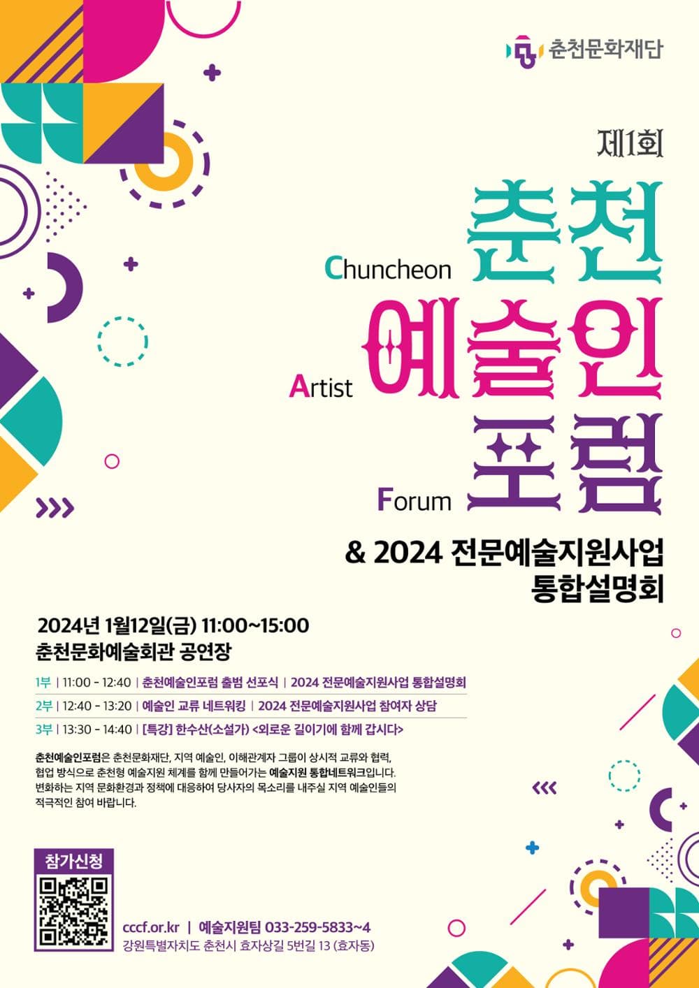 제1회 춘천예술인포럼 & 2024 전문예술지원 통합설명회