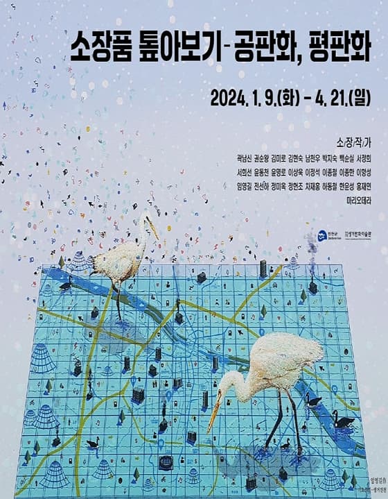 소장품 톺아보기 공판화, 평판화 기간 : 2024-01-09 ~ 2024-04-21 장소 : 진천군립 생거판화미술관 문의처 : 생거판화미술관 043-539-3114 요금 : 통합관람권 성인 5,000원 (※진천사랑상품권 전액 환급) 전시 충북 예매하기