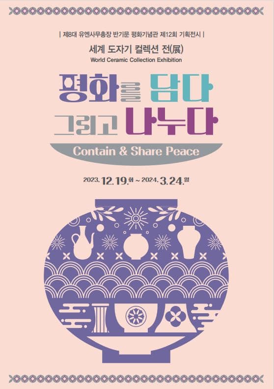 세계 도자기 컬렉션 展 - 평화를 담다 그리고 나누다 기간 : 2023-12-19 ~ 2024-03-24 장소 : 음성문화예술회관 문의처 : 반기문평화기념관 043-871-3124 요금 : 무료 전시 충북 예매하기
