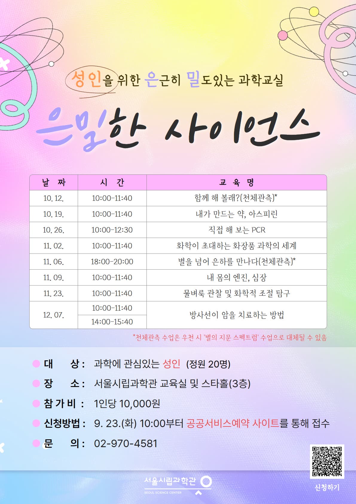 [서울시립과학관] 2025년 성인을 위한 은근히 밀도있는 과학교실 '은밀한 사이언스'
