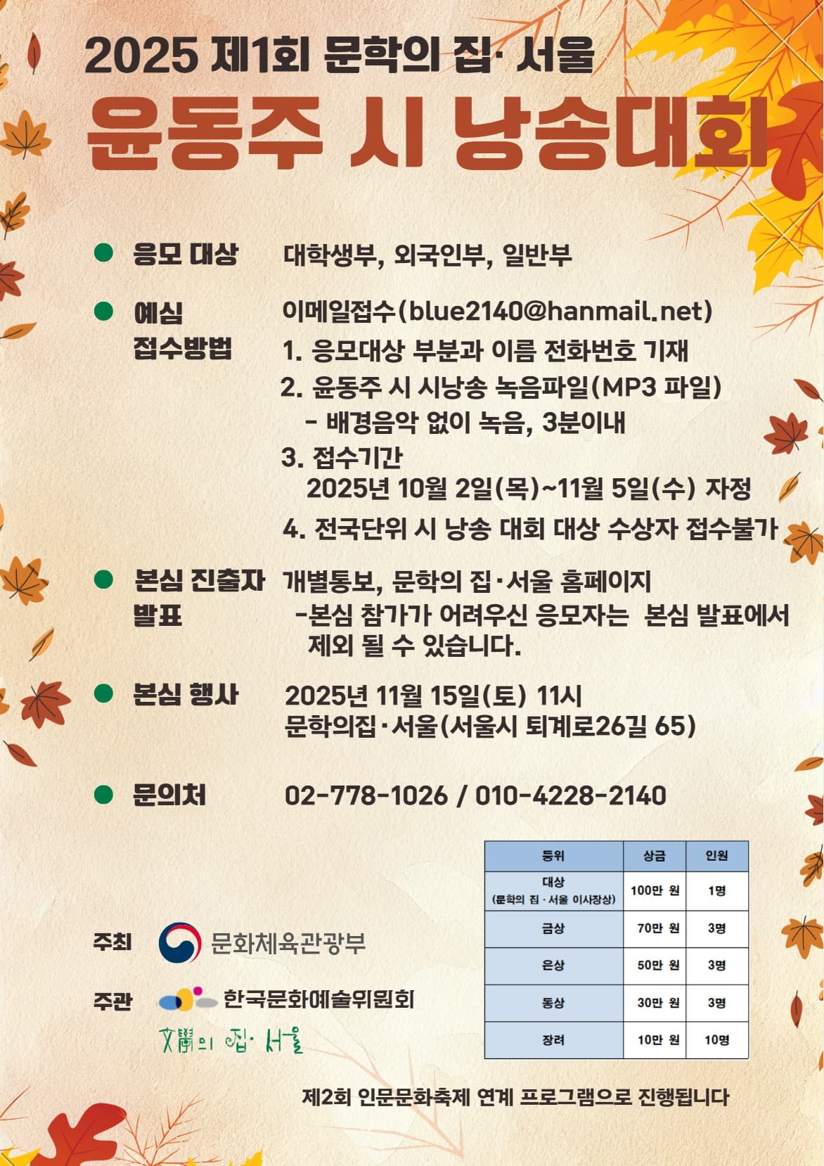 2025 제1회 문학의 집 서울 '윤동주 시 낭송대회'