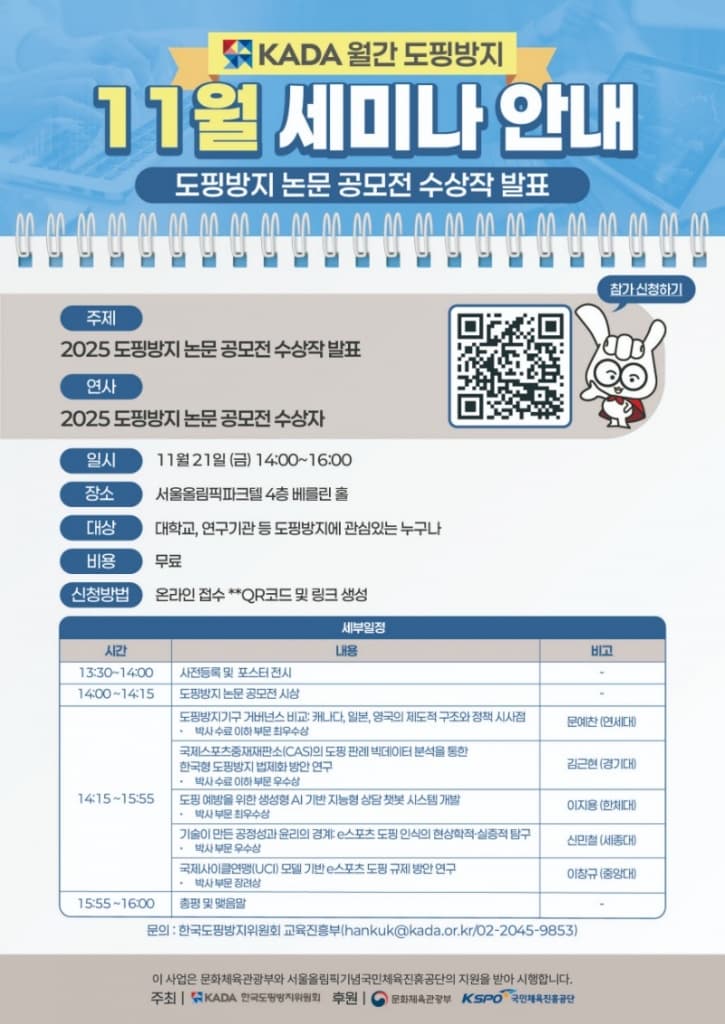 [한국도핑방지위원회] 11월 세미나 '도핑방지 논문 공모전 수상작 발표'