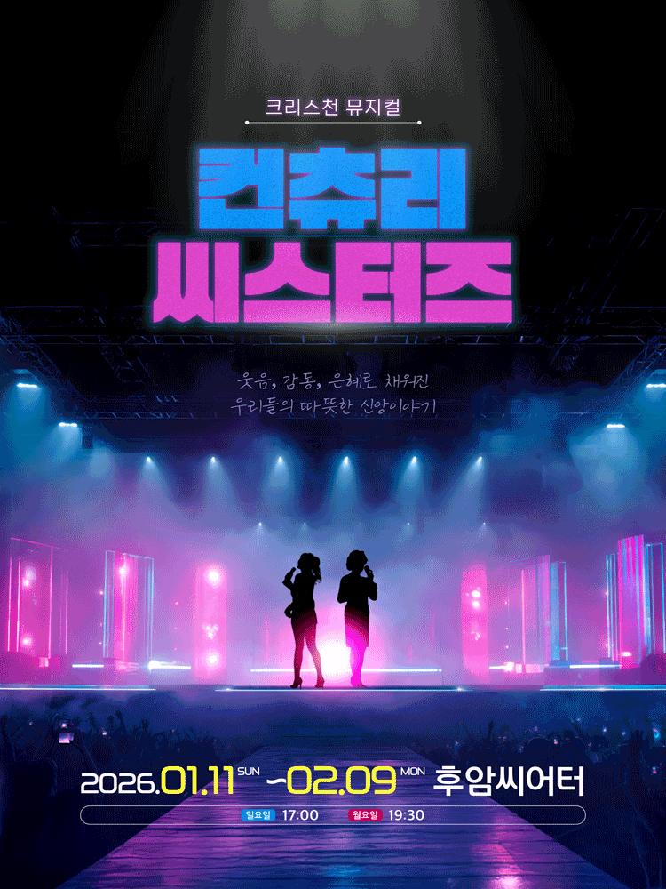 크리스천 뮤지컬: 컨츄리 씨스터즈 기간 : 2026-01-11 ~ 2026-02-09 장소 : 후암씨어터(콘텐츠룸) 문의처 : 010-4013-8757 요금 : 전석 50,000원 뮤지컬/오페라 서울 예매하기