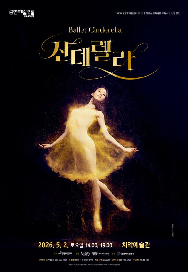[원주] 부산발레시어터, 신데렐라 기간 : 2026-05-02 ~ 2026-05-02 장소 : 원주치악예술관 문의처 : 원주문화재단 033-760-9885 요금 : 전석 30,000원 무용/발레 강원 예매하기