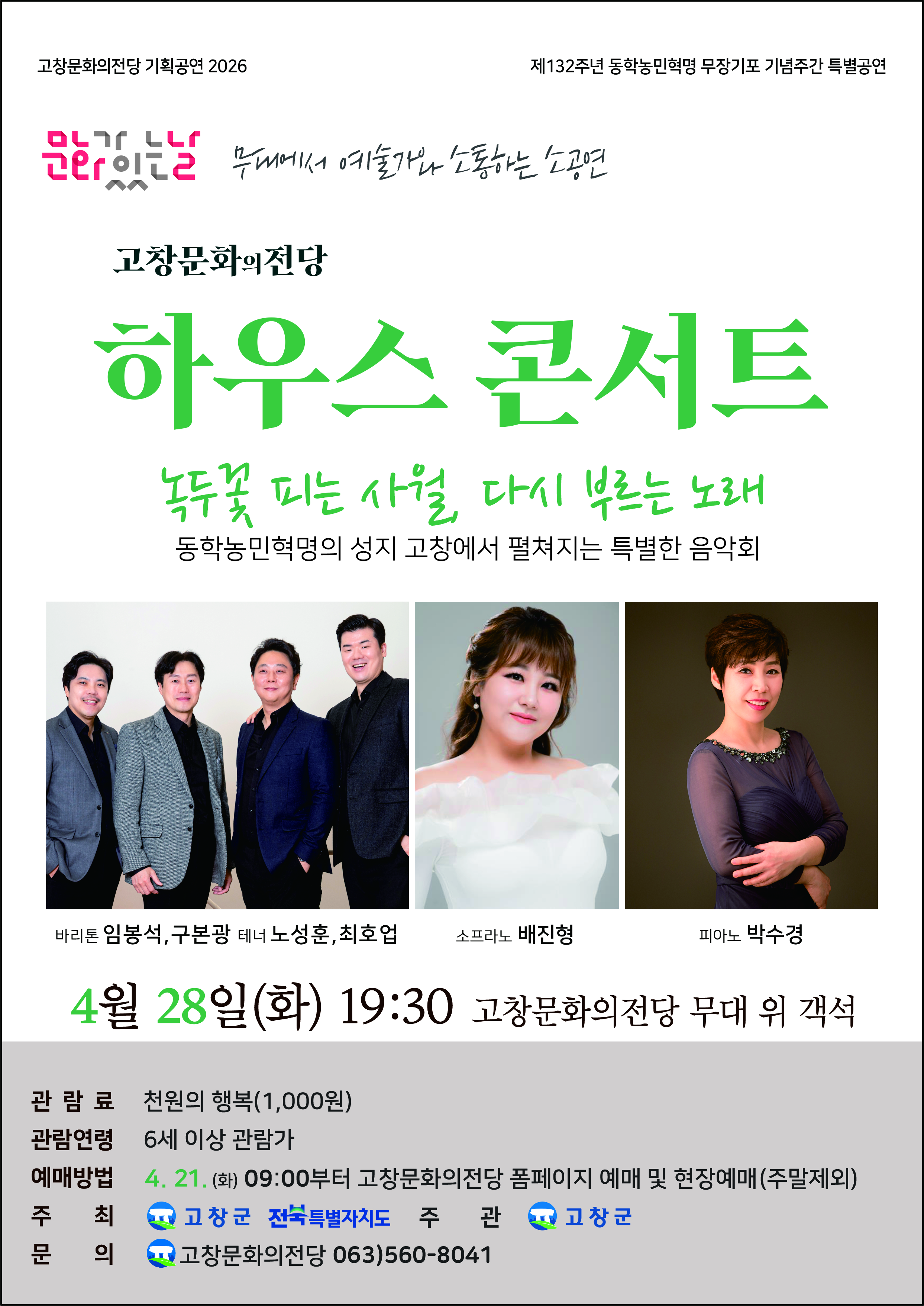 고창문화의전당 하우스콘서트: 녹두꽃 피는 사월, 다시 부르는 노래 (4월)